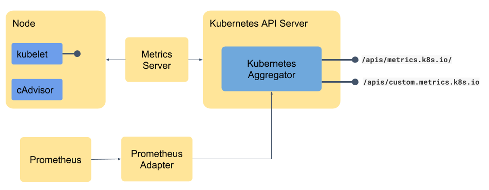Metric server가 수집한 metric 정보를 k8s aggregator에게 노티하는 방식으로 metric 정보가 관리된다. 만약 metric 정보를 얻고 싶다면 별도의 tool을 이용해서 aggregator에 있는 metric 정보들을 가져가게 된다.